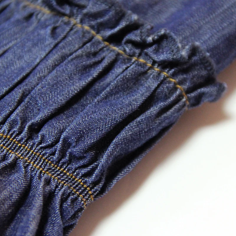 Sale Free Shiping 2017 Vintage Women Long Mid-calf Long Sleeve Autumn Denim Cotton Dress Embroidery S-L Dresses A-line Elastic Waist