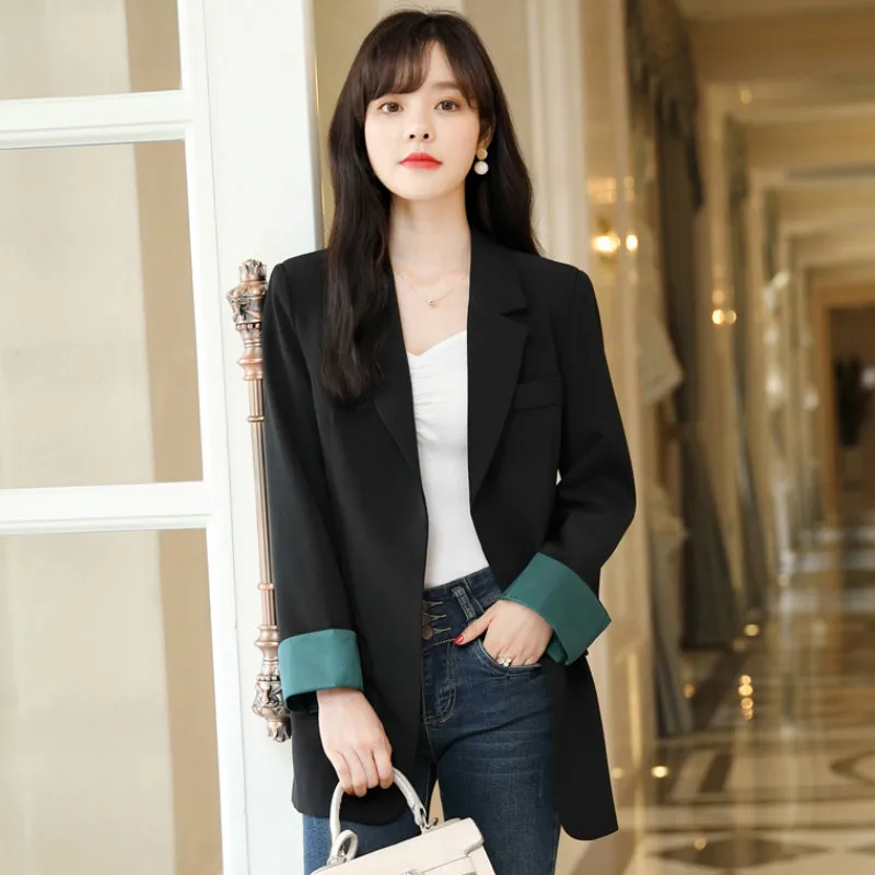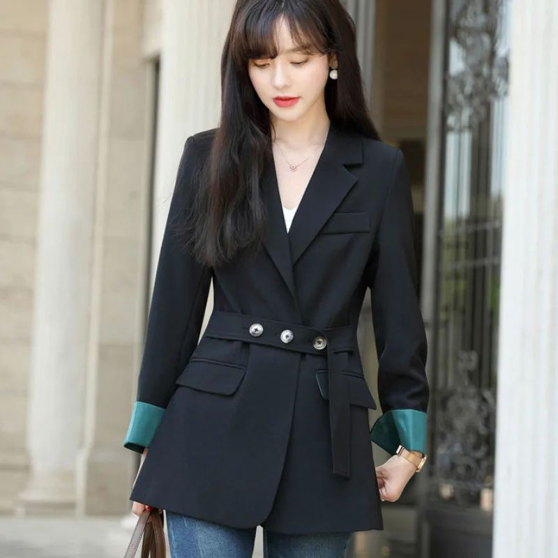 Images of Women Blazer Jacket Long Sleeve Korean Style Casual Black Waist Band Female Pockets Buttons Outerwear Suit Coats Plus Size 4XL :