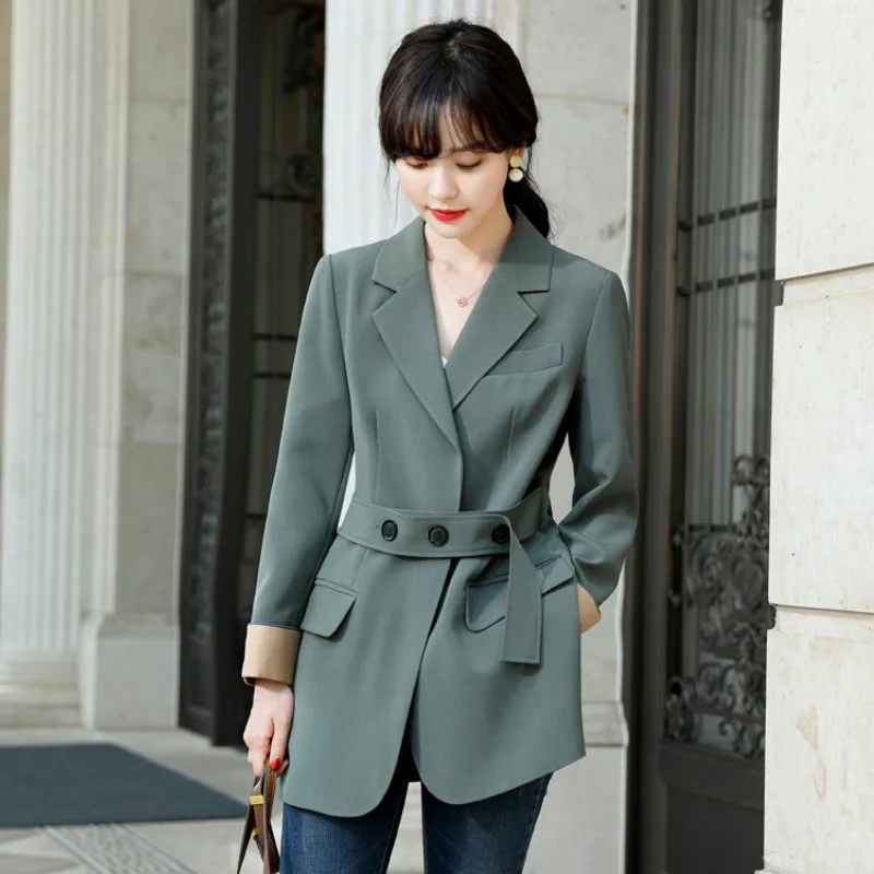 Best Offer Women Blazer Jacket Long Sleeve Korean Style Casual Black Waist Band Female Pockets Buttons Outerwear Suit Coats Plus Size 4XL