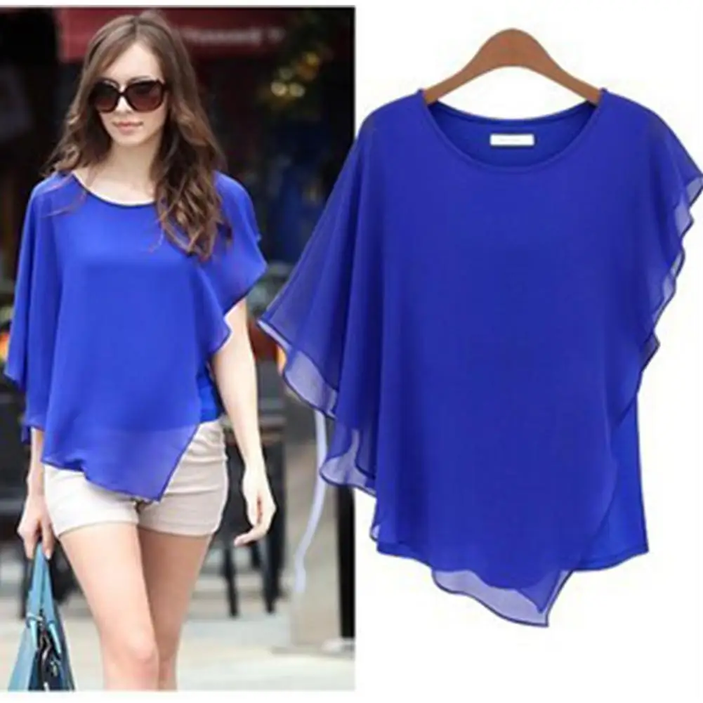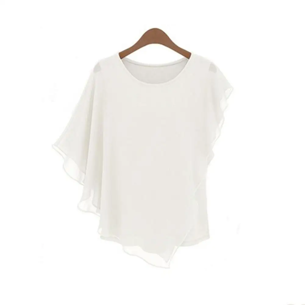 New Yfashion Women Summer Stylish All-match Ruffle Bat Sleeve Chiffon T Shirt