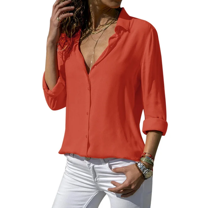 Images of JODIMITTY Women Tops Blouses 2020 Long Sleeve Solid V-Neck Chiffon Blouse Female Office Workwear Shirts Blouse Plus Size :