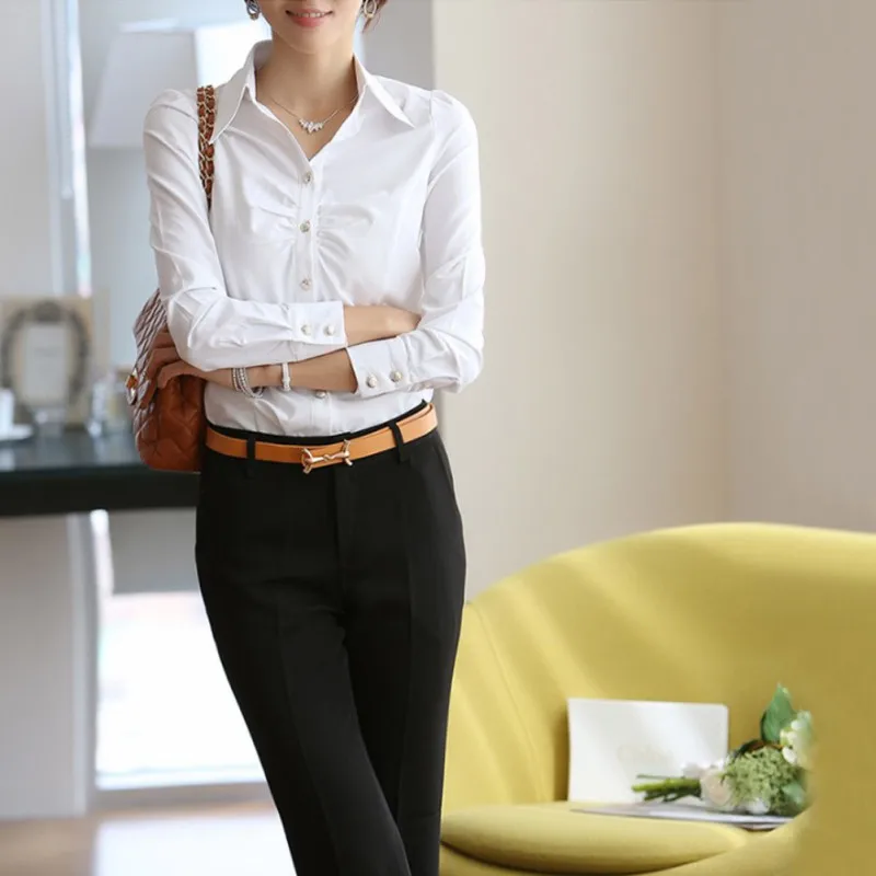 Images of Spring And Autumn Clothes Formal Wear Ladies Bottoming Shirt White Shirt Korean Professional Long-sleeved Chiffon Shirt Women :