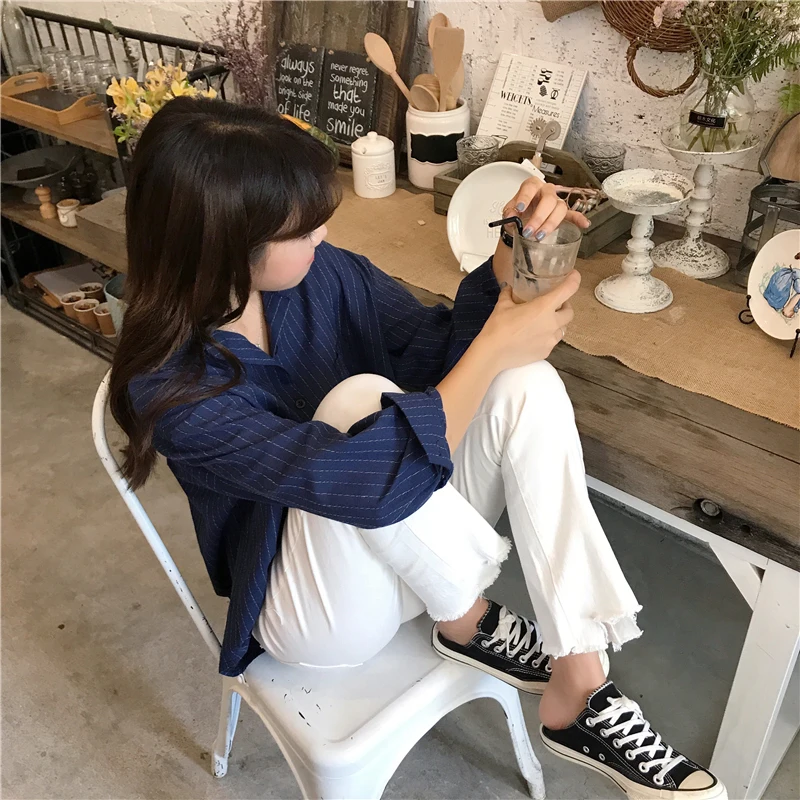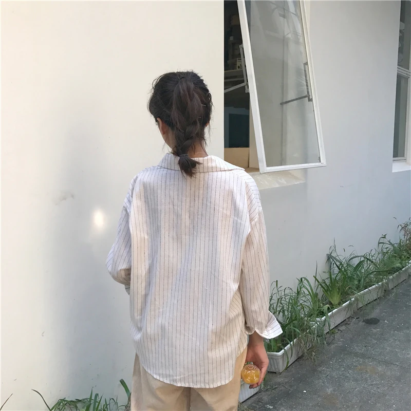 Images of Spring Women's Blouse Shirt Casual Striped Long Sleeve Turn-down Collar Plus Size Blouse Women Ropa Mujer Clothing For Women :