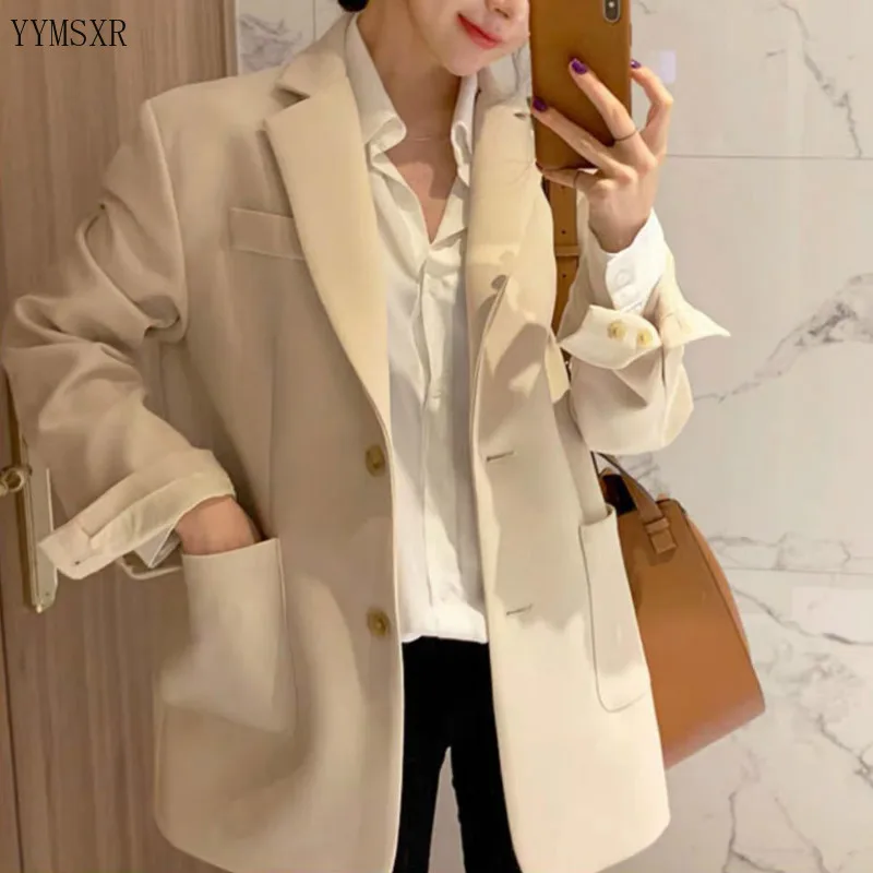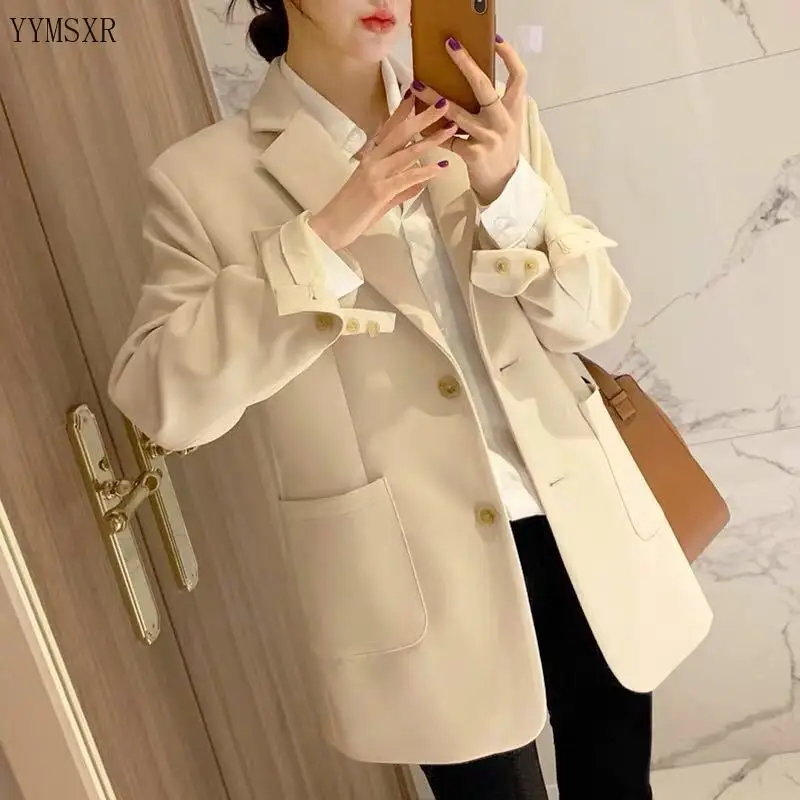Images of Temperament Women's Mid-length Jacket High Quality 2020 Korean Style New Casual Loose Ladies Blazer Female Coat Feminine Autumn :