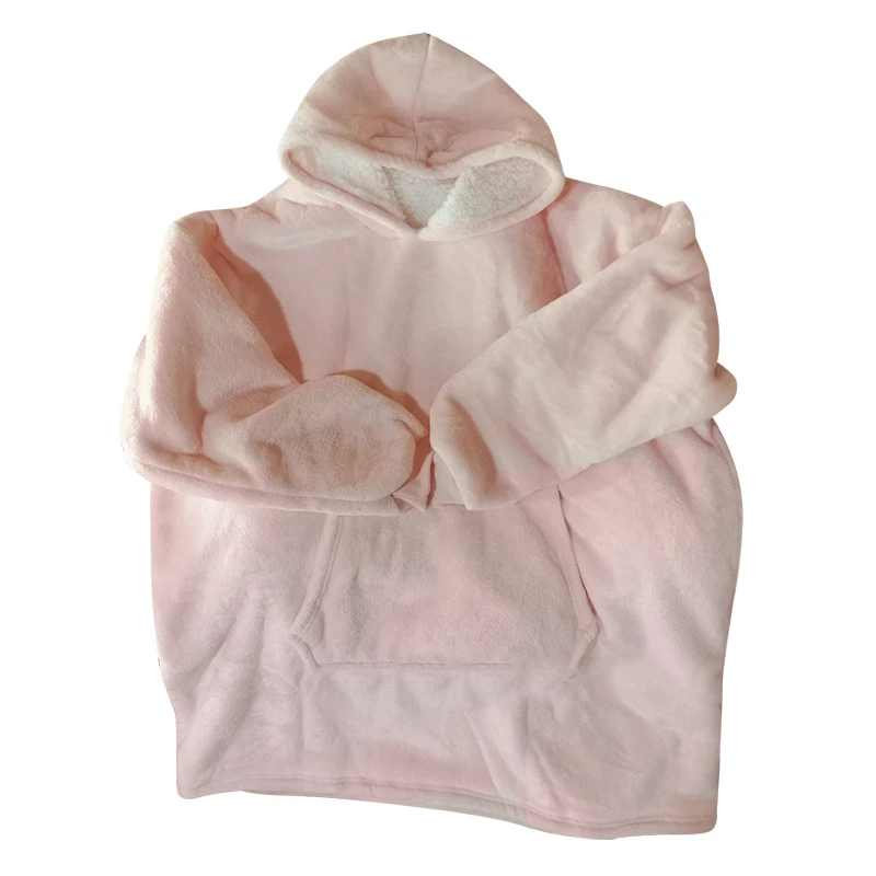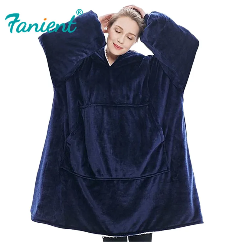 Buy Solid Blue Grey Red Fleece Hooded Blanket With Sleeves Sherpa Plush Winter Outdoor hoodie Robe Soft Warm Wearable TV Blanket