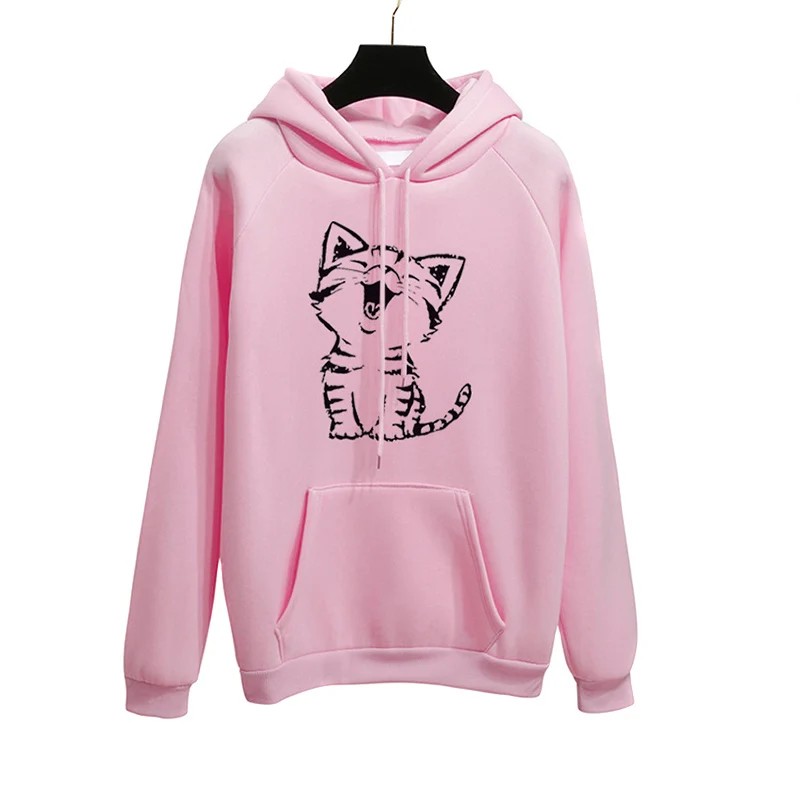 Sale Hoodies Women Cute Cat Printed Autumn Winter Top Hoodie Loose Thick Sweatshirt Long Sleeve Pullovers Womens Trendy Sweatshirts