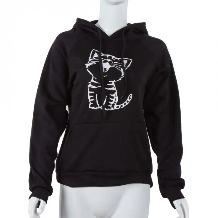 Buy Hoodies Women Cute Cat Printed Autumn Winter Top Hoodie Loose Thick Sweatshirt Long Sleeve Pullovers Womens Trendy Sweatshirts