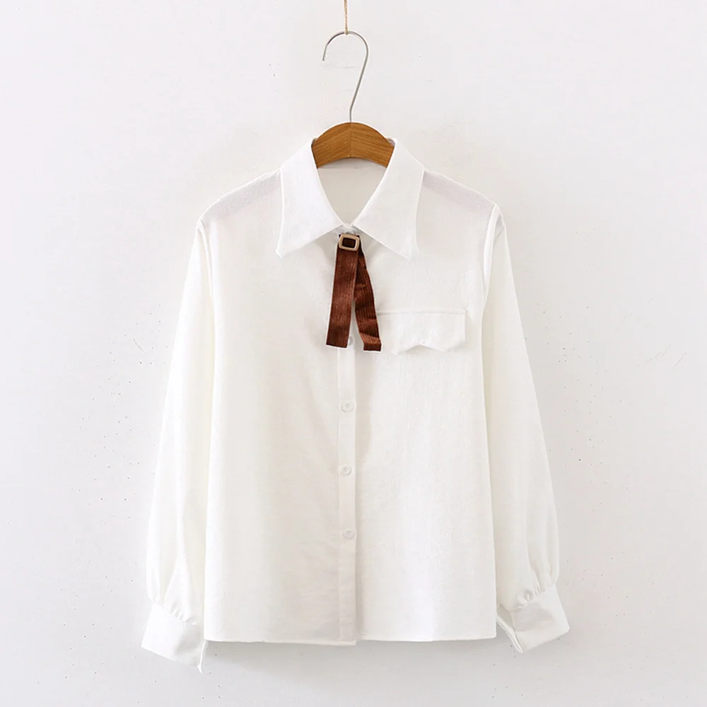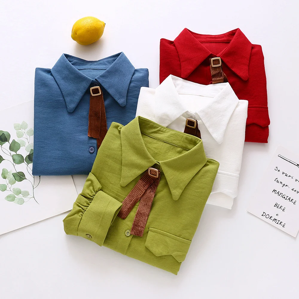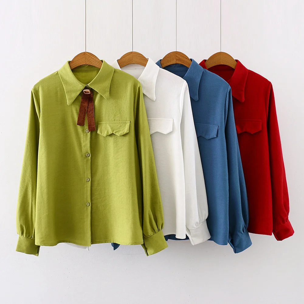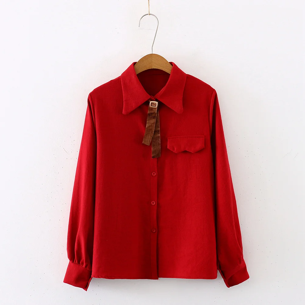 New Office Ladies Tops Blouses Women Loose Shirt Elegant Button Up Shirts Spring Corduroy Turn-down Collar Female Long Sleeve Shirt