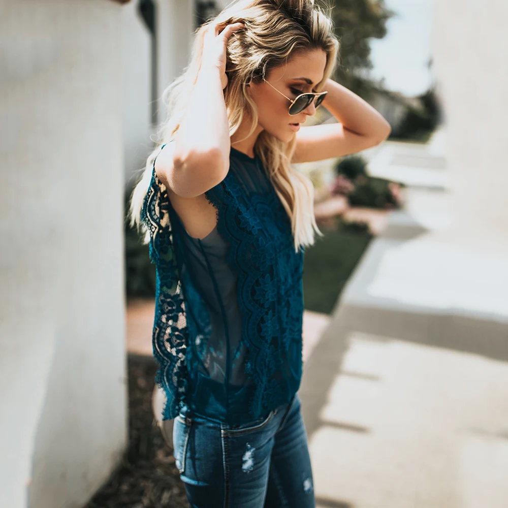 Best Offer Summer Sleeveless Shirts Women Floral Lace Patchwork Blouse Female Casual Round Neck Ladies Tops Mesh Trasparent Blouses Blusas