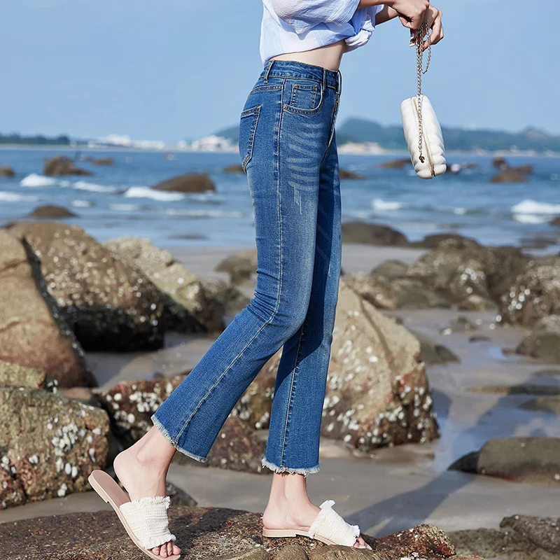 Best Offer Ladies jeans denim Fashion wide leg pants High quality ladies jeans slim Jeans in Regular Fit Ankle-length High Waist Women blue