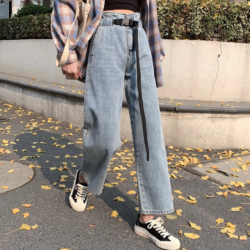Buy Fashion Harajuku Straight Pants Woman Jeans High Waist Clothes Wide Leg Denim Clothing Blue Streetwear Vintage Elasticated belt