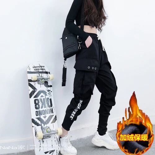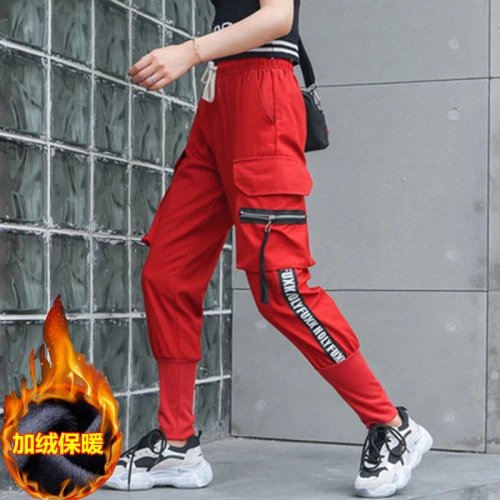 Images of Autumn Streetwear Cargo Pants Women Loose Big Pocket Pants High Waist Loose Female Trousers Drawstring Workout Pants Women :