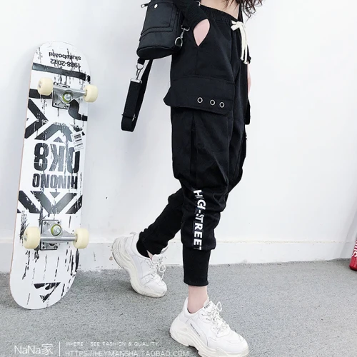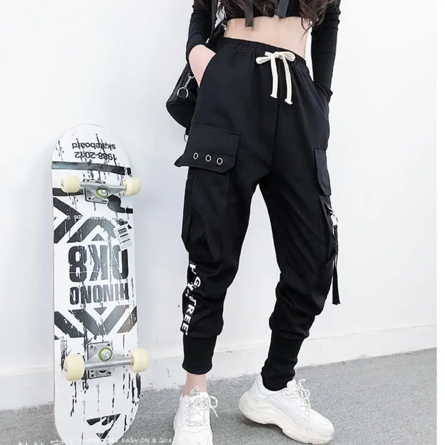 Sale Autumn Streetwear Cargo Pants Women Loose Big Pocket Pants High Waist Loose Female Trousers Drawstring Workout Pants Women